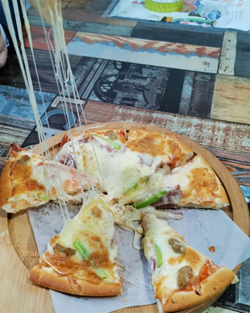 8. 放的奶酪太少也不拉丝,正如偷工减料的大楼也不稳固一样。 比如9寸的披萨是90克-110克之间,你硬是放个80克,当然不会拉丝或者拉丝不好了。 现在生意竞争激烈,很多店都放很少的芝士 去降低成本。甚至市场有卖9.90元的披萨, 你想想芝士那 么贵,他能放多少的奶酪进去?